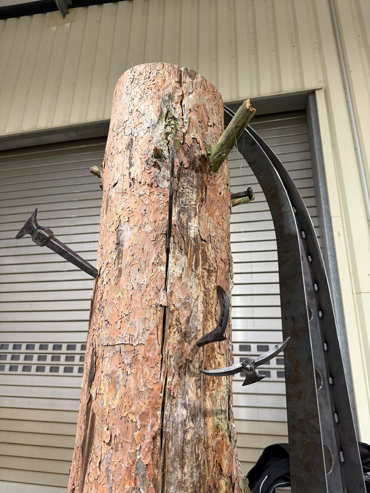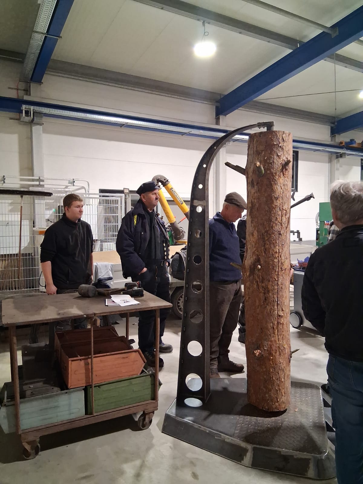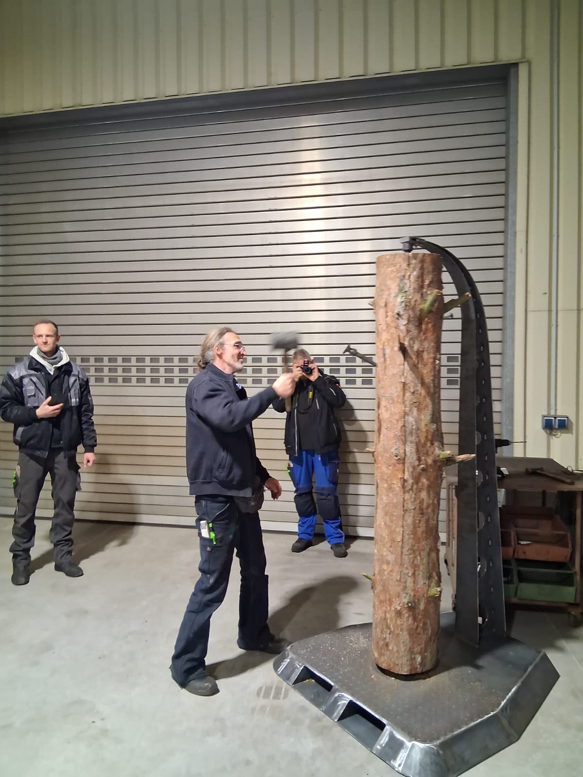 Im Anschluss ging es weiter zur Schmiede Kalix in Lorenzkirch bei Zeithain, einem liebevoll geführten Familienbetrieb in der sechsten Generation. Dort fand ein intensiver fachlicher Austausch statt, bei dem Wissen, Erfahrung und Handwerkstradition im Mittelpunkt standen. Gemeinsam wurden Schmiedestücke gefertigt, die anschließend in den eigens gebauten Nagelbaum eingeschlagen wurden – ein Highlight des Tages, das die Gemeinschaft und Verbundenheit des Schmiedehandwerks sichtbar machte.