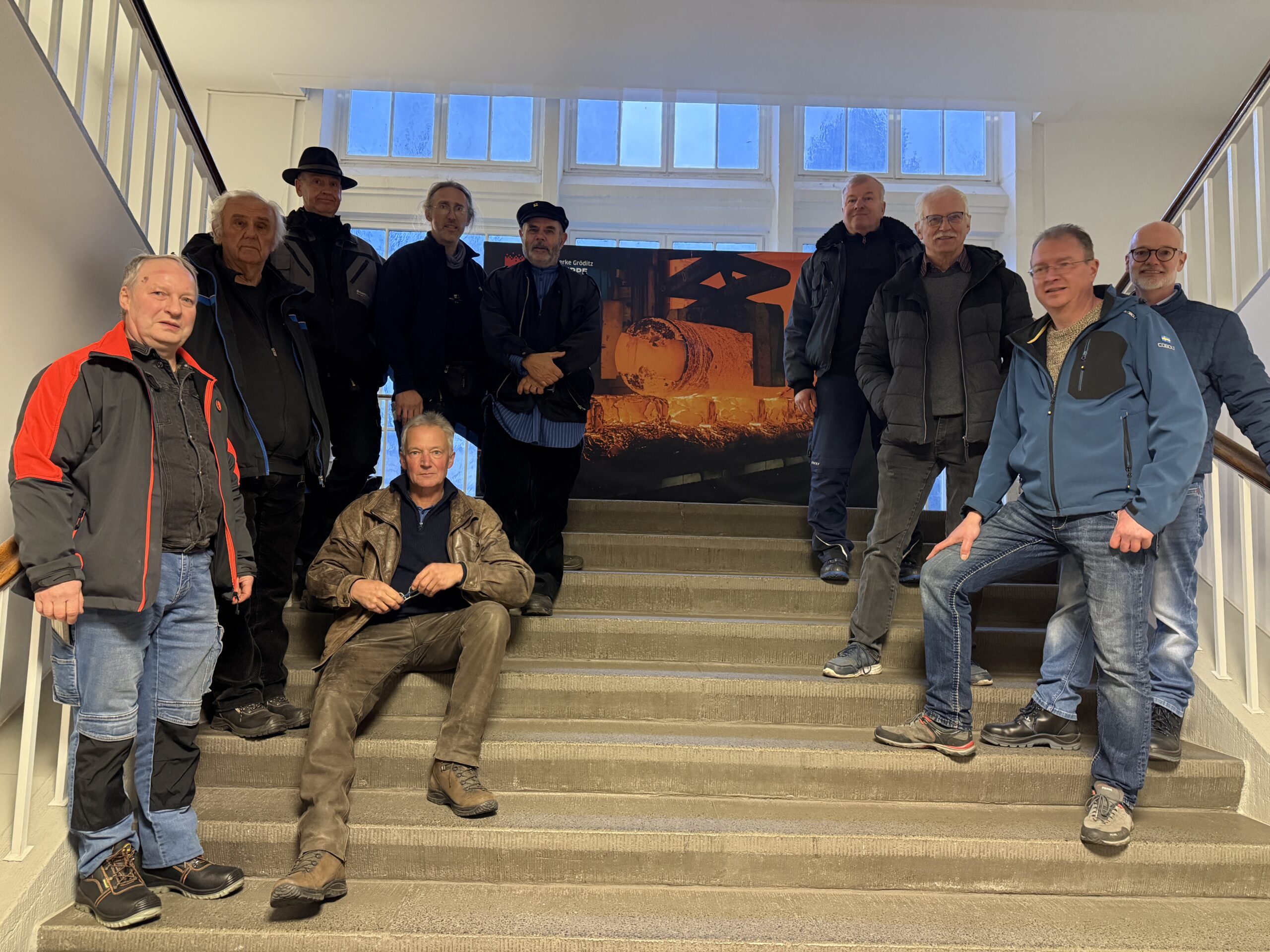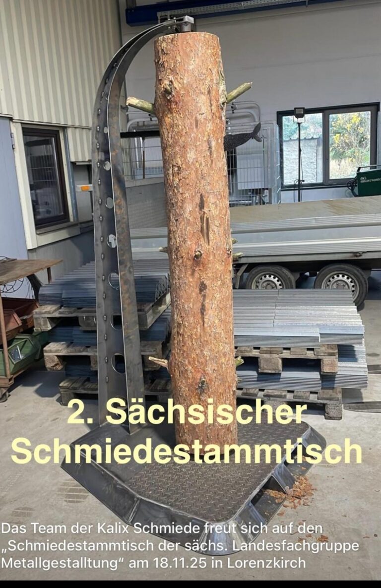 Der 2. Schmiedestammtisch Sachsen am 18.11.2025 führte 25 Metallgestalter in die traditionsreichen Schmiedewerke Gröditz. Das Unternehmen beschäftigt heute rund 700 Mitarbeitende und zeichnet sich durch ein außergewöhnlich starkes Engagement in der Nachwuchsförderung aus: Etwa 50 Auszubildende sowie mehrere Dual-Studierende werden kontinuierlich im Betrieb ausgebildet. Damit verfügt Gröditz über einen für die Branche überdurchschnittlich hohen Azubi-Anteil, der die große Ausbildungsbereitschaft und zukunftsorientierte Ausrichtung des Werks eindrucksvoll unterstreicht.